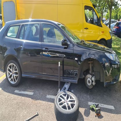 We can come to you at your given place with new tyres. our sprinter van are fully equipped with machines, our tyre fitters are fully trained to replace the tyres on the spot with in 30 minutes you will back on the road .